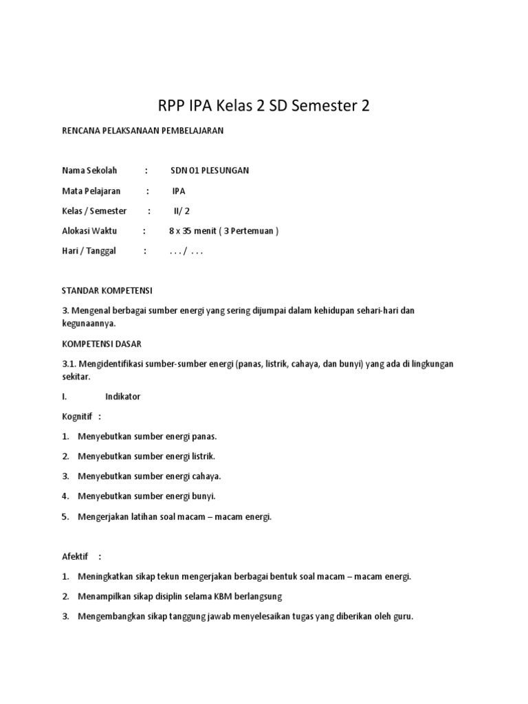 File rpp dan administrasi pembelajaran yang dibagikan dalam bentuk word sebelum mendownload silahkan baca dulu postingan ini. Dari format rpp yang ada pada halaman inipun akan kami siapkan secara lengkap yakni dengan meliputi semua kelas 7 8 9 mapel ipa materi ajar. Rpp tematik sd kelas 2 revisi 2020 3. Rpp tematik sd kelas 3 revisi 2020 4. Rpp 1 lembar ipa kelas 8 semester 2 revisi 2020 merupakan bagian dari perangkat pelajaran yang harus di susun oleh guru untuk kegiantan sesuai judul posting ilmuguru.org akan berbagi contoh rpp satu lembar/halaman kurikulum 2013 khusus jenjang smp kelas 8 8 serta 9 semester 1 dan 2 yang. Bagaimanakah cara download rpp kelas 2 ??? Pas kelas 4 (1) pelajaran bahasa indonesia kelas 3 sd (1) penilaian harian kelas 3 (1) pkn (1) pkn kelas 11 (1) rpp (1) rpp. Seperti yang telah dijelaskan di atas, di sini bapak ibu bisa dengan mengunduh semua file rpp kelas 2 yang ada, mulai dari semester 1 hingga semester 2 tanpa iklan. 9 ilmu pengetahuan alam untuk sd/mi kelas ii semester 2 gambar 1.13 seterika listrik dapat menghasilkan panas karena energi listrik 2. Demikian artikel tentang download rpp ipa smp/mts kelas 8 k13 revisi terbaru semester 1 & 2. Energi yang sering digunakan dan cara penghematannya a. Rencana pelaksanaan pembelajaran (rpp)sekolah kelas mata pelajaran tema semester : Rpp tematik sd kelas 1 revisi 2020 2.