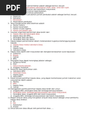 Berikut Soal Tes Perangkat Desa Pdf from imgv2-2-f.scribdassets.com इस एप्लिकेशन को अभ्यास परीक्षा जवाब के साथ सुसज्जित गांव द्वारा प्रदान की प्रश्न शामिल हैं Soal ujian perangkat desa 2021 soal ujian perangkat desa 2021. Hanya mempelajari dan berlatih soal peraturan daerah dan peraturan desa ini saja tidak cukup. Contoh soal perangkat desa pancasila dan uud 1945. 2019 tes ujian komputer ms word perangkat desa pns membuat undangan youtube. Sedangkan untuk jumlah soal yang kami bagikan jauh lebih banyak. 100 contoh soal ujian tulis perangkat desa 2021 dan kunci jawaban pdf download. 50 soal latihan ujian perangkat desa.