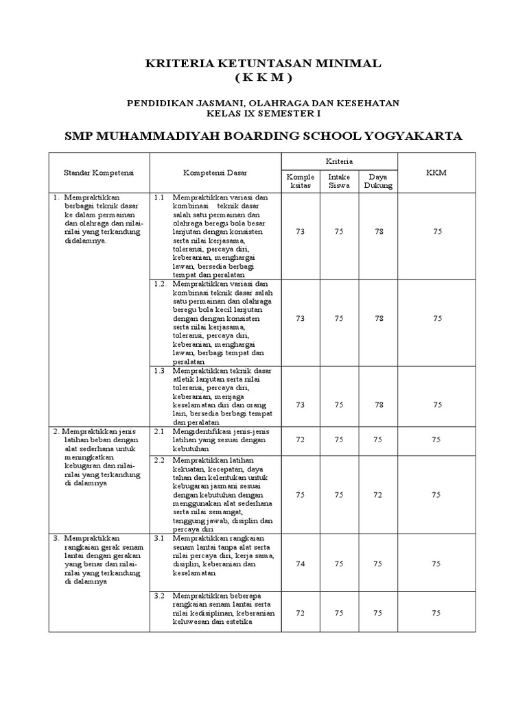 Kkm k13 smp kelas 7 kelas 8 kelas 9. Demikianlah informasi artikel pendidikan terbaru mengenai perangkat pembelajaran matematika untuk kkm sudah kami siapkan. Menjelang tahun ajaran baru (2018/2019), guru wajib menyusun perangat pembelajaran sebagai perencanaan pembelajaran yang akan diterapkan dikelas. Rpp silabus prota promes kkm pjok smp kelas 7, 8, 9 ktsp semester 1 & 2 ini akan saya share untuk melengkapi perangkat pembelajaran yang anda susun sebagai persiapan mengajar khususnya mapel penjas/ pjok (pendidikan jasmani, olahraga, dan kesehatan). Selain itu mungkin juga contoh di atas dapat dijadikan bahan awal sebelum. Detail kkm penjas smp kelas 7 8 9 k13 pdf dapat kamu nikmati dengan cara klik link download dibawah dengan mudah tanpa iklan yang mengganggu. Download kkm smp kelas 7 8 9 kurikulum 2013. Kkm k13 pjok (penjaskes), anda juga bisa mendapatkan format untuk mapel lainnya. Demikian informasi terbaru artikel pendidikan mengenai salah satu komponen perangkat pembelajaran penjas untuk kkm sudah admin sajikan. Demikian kkm/ kbm pjok kelas 9/ ix jenjang smp/mts kurikulum 2013 revisi 2018 yang dapat saya bagikan, semoga bermanfaat. Dengan adanya contoh format kkm smp mts kelas 7 8 9 k 13 terbaru yang saya bagikan, saya berharap anda dapat terbantu walaupun hanya sekedar menyediakan contohnya saja. Diharapkan dokumen diatas dapat membantu tugas pekerjaan pendidik ketika melengkapi keperluan administrasi di sekolah. Kbm pjok kelas 9 semester 1 k13 revisi 2018.doc, unduh.