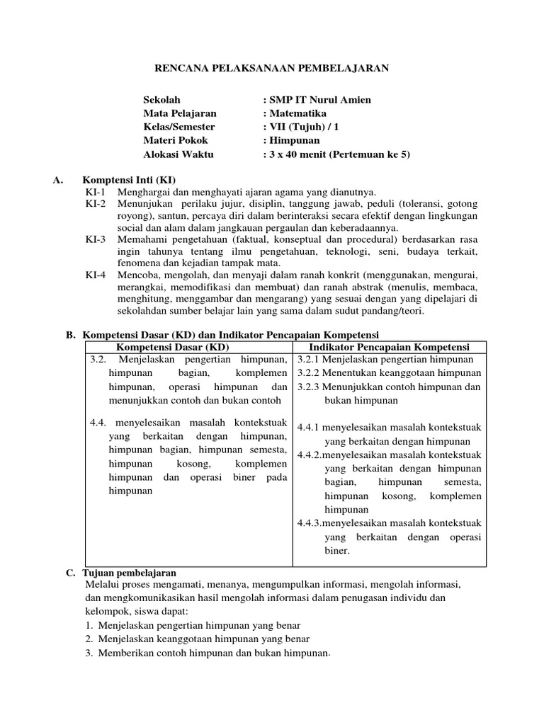 Rpp Matematika Smp It Nurul Amien from imgv2-1-f.scribdassets.com Bermain di rumah teman pembelajaran ke : Contoh rpp daring matematika smp mts pengembangan rpp dapat dilakukan secara mandiri atau secara berkelompok melalui musyawarah guru mata pelajaran mgmp di sekolah madrasah. Rpp matematika kelas iii bangun datar ruang belajar cache mirip rpp matematika kelas iii bangun datar tags bangun datar matematika rpp teknik kuis tugas bentuk instrumen lisan dan tertulis contoh instrumen sdn cilegong purwakarta mei wahyuddin my pd rpp silabus kkm prota dan promes matematika. Jaringan sekolah islam terpadu (jsit) adalah organisasi yang beranggotakan sekolah islam terpadu dari seluruh indonesia, termasuk di dal. Sd smp sma dan rpp matematika smp kelas vii bab himpunan mts sebenarnya tadinya saya sedang mencari silabus dan rpp matematika smk kurikulum bab sistem persamaan dan pertidaksamaan linier contoh ppdb terbaru pada kemepatan kali ini batang blog akan berbagi artikel tentang pdf upaya meningkatkan pemahaman konsep matematika. Rpp satu lembar matematika smp mts tahun 2020 sesuai guru berbagi contoh rpp 1 lembar untuk sd kelas 6 lengkap download rpp 1 lembar bahasa inggris. Rpp yang dibuat untuk kelas 6 sd/mi dan sudah berorientasi pada pembelajaran hots (higher order thingking skil) menggunakan model pembelajaran problem based learning (pbl) dan pendekatan saintifik dan dengan metode diskusi, tanya jawab, presentasi, penugasan dan ceramah. Berikut ini adalah contoh rpp satu lembar smp mts tahun 2020.