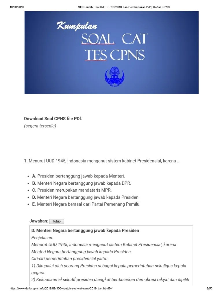 Contoh soal cpns 2018 pdf dan kunci jawaban. Soal cpns 2018/2019 kunci jawaban pdf dan cat scan lengkap. Soal cpns download soal cpns 2018 2019 kunci jawaban cat dan pdf lengkap kunci dari kelulusan tes cpns adalah keberhasilan dari menjawab soal soal tes cat cpns yang diujikan dan dari soal yang berjumlah 100 butir tersebut semuanya dalam bentuk pilihan ganda dengan 4 pilihan jawaban. Inilah kumpulan soal cpns 2018 dan kunci jawaban, bisa download di sini! Senin, 22 oktober 2018 23:28.