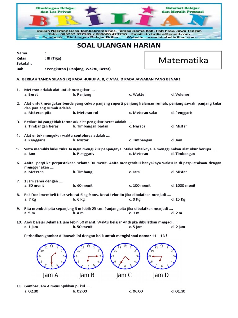 Soal Matematika Kelas 5 Sd Bab 2 Pangkat Dan Akar Dan Kunci Jawaban Bimbel Brilian from 3.bp.blogspot.com Berikut ini kami sajikan kumpulan soal pilihan ganda dan esai tentang pengukuran waktu, panjang dan berat mata pelajaran matematika untuk kelas 2 sd. Berikut ini merupakan contoh soal tema kelas 5 semester 1 dan kunci jawaban. Salah satu materi matematika yang dipelajari pada kelas 5 semester 1 adalah hubungan jarak waktu dan kecepatan. Semoga latihan soal matematika kelas 5 pecahan beserta kunci jawabannya tadi dapat bermanfaat. Diketahui 25², maka sama dengan … a. Link download soal mtk sd sudah kami sediakan jika anda ingin mendownload soal. Soal pecahan kelas 5 perlu diujikan untuk mengetahui sejauh mana pemahaman siswa setelah diberikan materi. => soal cerita online tentang jam lama waktu level 2 langsung ada nilainya.